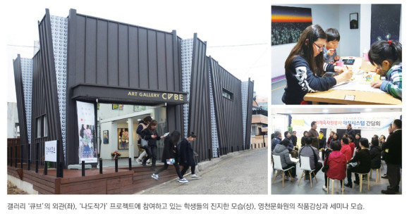갤러리 큐브 조은정 대표의 이야기다. 조 대표는 대창출신으로 영창중과 영천여고를 졸업하고 대구대에서 회화를 전공한 영천창작스튜디오 5기 입주작가이다. 영천과 대구에서 작품활동을 했고 인사동 신진작가와 중년작가전, 코리아아트페스타, 한중국제미술교류전, 대구·청주아트페어 등 다양한 전시및 아트페어에 참여한 중견작가다. 사비를 투자해 갤러리를 짓고 현재까지 대부분의 운영비를 혼자 감당하고 있는 조 대표가 갤러리에 거는 꿈은 야무지고 희망차다.