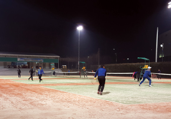 추운 겨울날씨에도 불구하고 야간 운동을 즐기는 시민이 늘고 있다. 지난 15일 밤 9시경 시민운동장 뒤 테니스장에는 동호인들이 많이 나와 테니스를 즐기며 겨울 추위를 이기고 있다. 이곳 테니스장은 2개 큰 코트에 각 4면씩을 보유하고 있는데 이날은 빈 코드없이 거의 다 찼다.