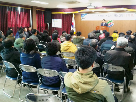 지난 1일 고경면사무소 2층에서 ‘2016 새해농업인 영농교육’을 실시했다. 포도 핵심재배기술에 대해 농업기술센터 전성호 박사의 강의를 듣기위해 농업인들이 대거 몰려와 인사인해를 이뤘다.
