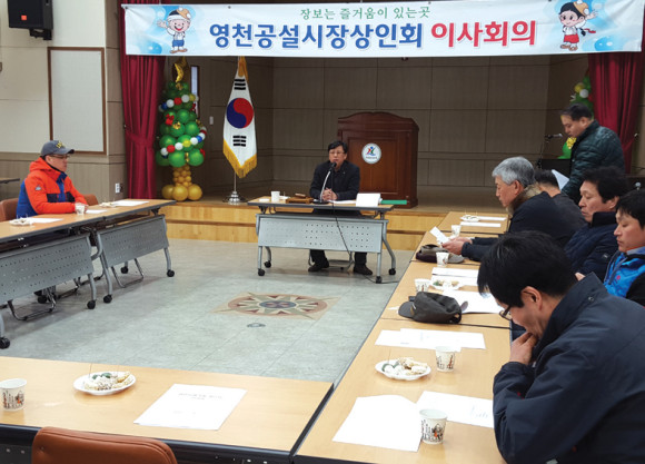 영천공설시장상인회 이사회가 지난달 29일 오후 공설시장 상인회 만남의광장에서 열렸다.