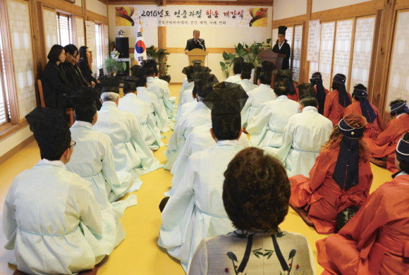 | | | ↑↑ 임고서원 충효문화수련원 2016경북선비아카데미 개강식이 열리고 있다. | | ⓒ 영천시민뉴스 | | 임고서원 충효문화수련원(원장 이남철)에서는 지난 10일 오후 2시 2016년도 경북선비아카데미 연중과정 합동 개강식을 수련원 내 학례당에서 개최했다. 개강식에는 경북선비아카데미 강좌 및 연중 교양과정(경전, 민화, 서예, 예학) 수강생들과 운영위원, 각 분야 전문 강사 등 60여명이 참석했다.