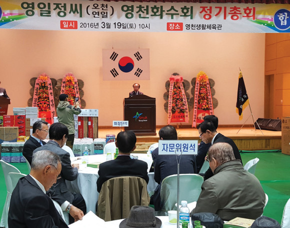 제12차 영일정씨 정기총회 및 화수회가 지난 19일 오전 생활체육관에서 정희수 국회의원, 한혜련 김수용 도의원, 정기택·김영모· 이춘우 시의원 등과 500여 명의 영일정 화수회원들이 참석한 가운데 열렸다.
