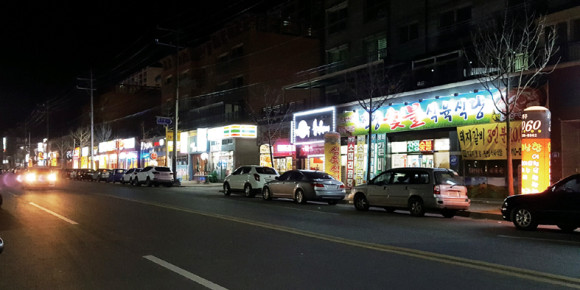영천의 서울로 불릴만한 창신 상가의 불빛 3월 31일 밤 10시 20분경 영천의 서울로 불릴만큼 밤 네온이 일품인 창신 상가에는 밤늦은 시간에도 불빛이 환하게 밝혀져 있어 8시만 넘으면 어두컴컴해지는 완산동 일대와 대조를 이루고 있다. 상가 바로 뒤에는 창신, 청솔, 아이존빌스타, 코아루 아파트 등 아파트만 3300여 세대가 있다.