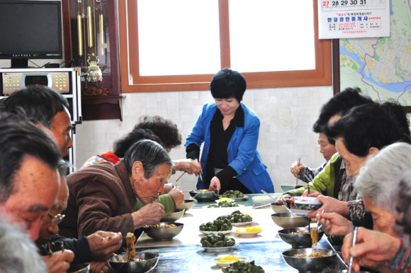 마을회관에는 40여명의 어르신과 부녀회원들이 모여 노래와 춤으로 흥을 내고 즐거운 마음으로 자장면을 맛보는 시간을 가질 수 있었다.