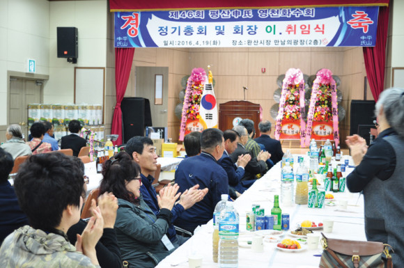 제46회 평산 신씨 영천화수회가 지난 19일 완산시장 2층 만남의 광장에서 일가 150여명이 참석한 가운데 열렸다. 이날 행사에는 이만희 국회의원당선자가 참석해 인사말을 전하고 일가를 격려했다. 신상돈 회장에 이어 올해 신임회장에 선출된 신동환(새로미중고 대표)회장은 “일가의 단합과 발전을 위해 힘껏 노력하겠다.”고 인사했고 회장의 임기는 2년이다.