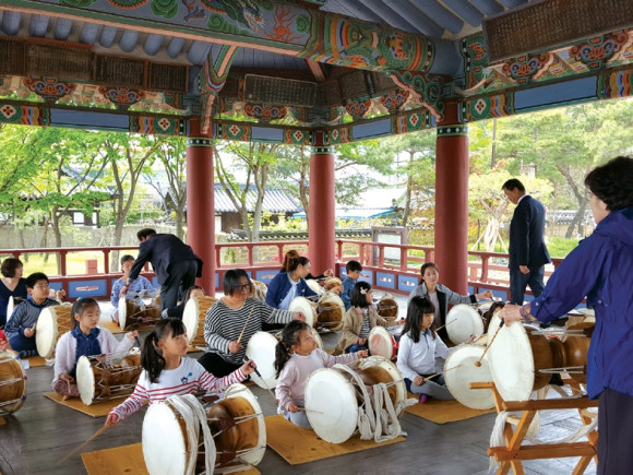 매주 토요일 조양각 마루에서 전통악기 소리가 흘러나오고 있다. 지난 23일 영천문화원 조양각에서는 우리가족 풍물단원들이 강사의 지도하에 전통악기를 배우고 있다. 우리가족 풍물단은 꿈다락 토요문화학교로 영천문화원이 선정, 매주 토요일 오후 강의를 진행하고 있으며 12월까지 한다.