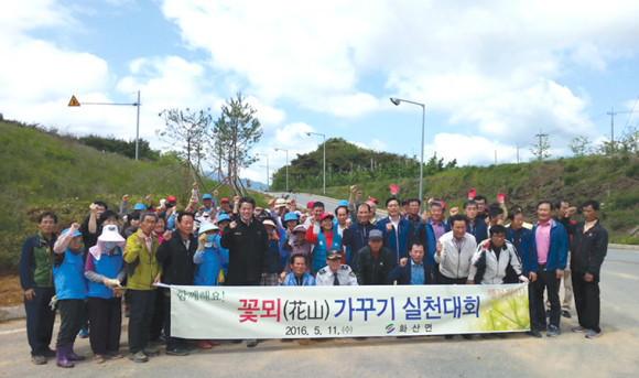 화산면은 지난 11일 기관단체장 및 각 마을주민 등 150여명이 참석한 가운데 꽃뫼(花山) 가꾸기 실천대회를 가졌다(사진).