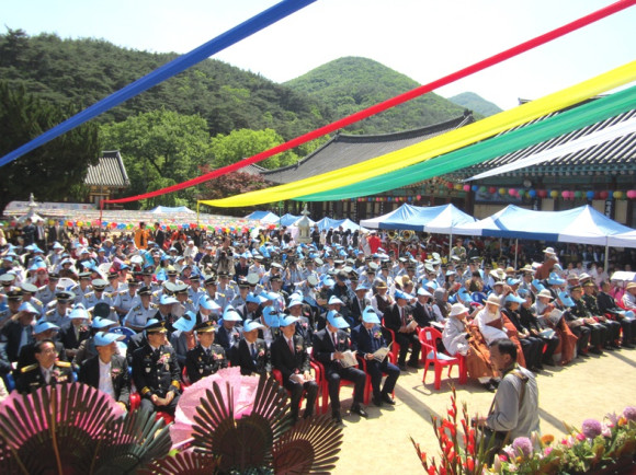 은해사 학교법인 동곡학원 선화여고 관현악단의 연주로 시작된 이날 행사에는 은해사 조실 혜인스님, 운곡 돈관 주지, 대덕스님, 대중스님을 비롯해 김관용 도지사, 김영석 영천시장, 이만희 국회의원 당선자, 각 기관단체장과 신도들이 참석하여 헌화 헌향 헌과 헌다 헌등 헌곡 등의 육법공양의 의식을 진행했다.
