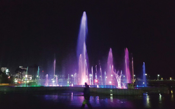 밤하늘에 빛나는 형형색색의 물줄기가 환상적인 분위기를 연출하고 있다. 영천강변공원 음악분수는 5월부터 가동을 시작해 10월까지 6개월 동안 매일 2회 오후 7시 30분부터 8시까지, 9시부터 9시 30분까지 30분간 이다.