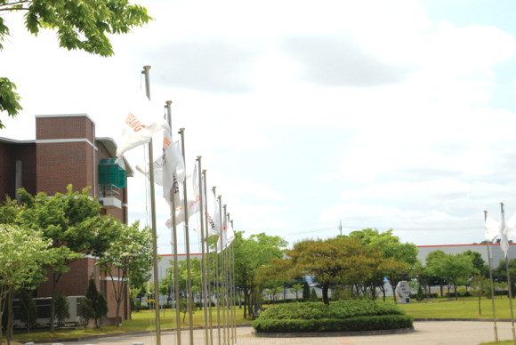 | | | ↑↑ 본관 앞의 회사기 모습. | | ⓒ 영천시민뉴스 | | 본관 입구 게시판에는 2014년 졸업생 취업현황을 홍보하고 있었다. 2014년도 졸업생 154명 가운데 140명이 취업했으며 상장회사에 취업한 졸업생이 107명이다. 특히 전공일치도가 98%에 달해 자신들이 배운 전공을 최대한 활용하는 것으로 분석됐다.
