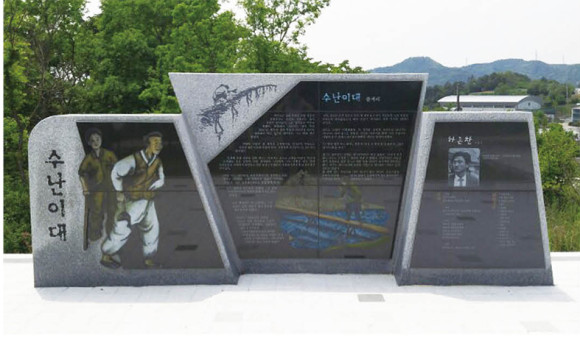 마현산 공원 일대에 영천전투메모리얼파크 전쟁체험권역 조성공사가 한창인 가운데 대표적인 반전소설인 ‘수난이대’의 줄거리와 소설을 쓴 영천출신의 대 작가 하근찬의 연혁을 새긴 비가 완공돼 공원을 방문한 시민들로부터 주목을 받고 있다.