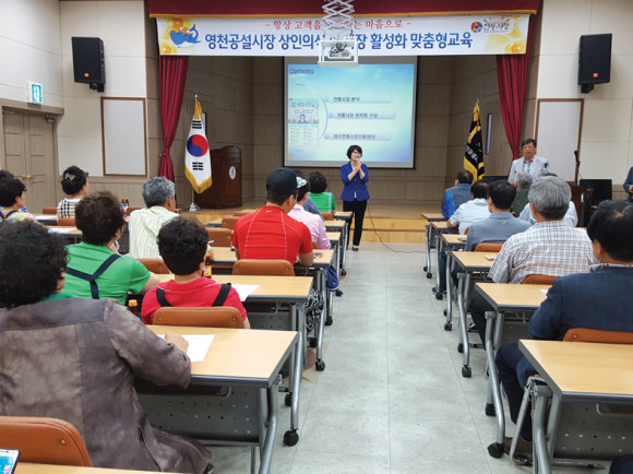 영천공설시장 상인의식 및 시장활성화 맞춤형 교육이 지난달 30일 오후 공설시장 만남의광장에서 이상열 영천시청과장, 박귀옥 완산동장 및 상인들이 참석한 가운데 열렸다.