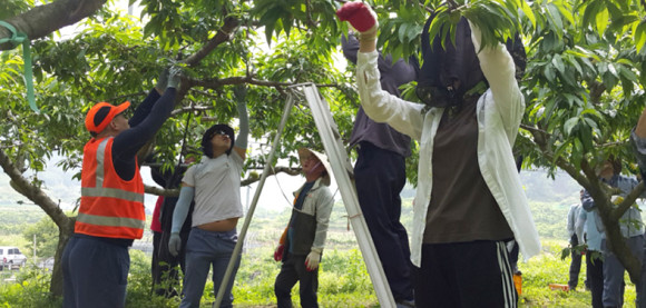 | | | ⓒ 영천시민뉴스 | | 영천시 환경보호과(과장 손주익) 직원 15명은 지난 24일 본격적인 영농철을 맞아 농촌인력 감소에 따른 일손 부족으로 어려움을 겪고 있는 과수 재배 농가를 지원하기 위해 농촌일손돕기에 나섰다. 환경보호과 직원들은 1만9800㎡ 면적의 복숭아밭에서 복숭아 열매 솎기 작업을 통해 과수재배농가의 노고를 몸소 체험하였고, 과수재배 농가에서도 영농철에 부족한 인력을 지원해 준 환경보호과 직원들과 영천시에 고마움을 전달했다. 환경보호과 손주익 과장은 “농가에 도움이 되어 다행으로 생각하며, 행정기관과 농가 간에 상생의 계기가 되어 영천시 발전에 밑거름이 될 것으로 보인다”며, 일손돕기활동을 지속적으로 추진할 것을 약속했다.