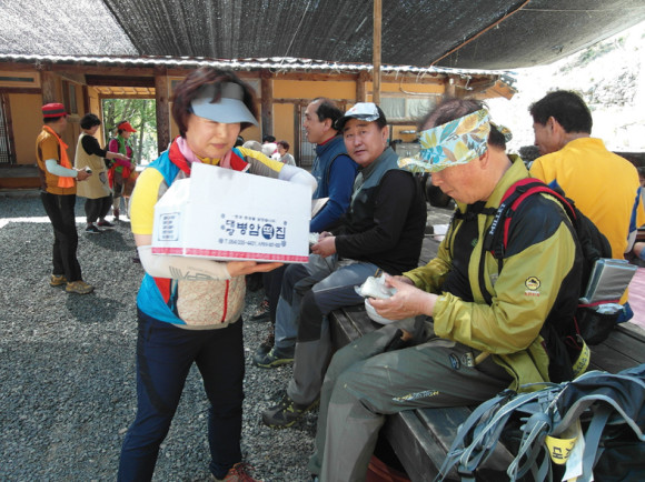 이날은 또 상리 마을 터줏대감인 김진영 씨(안산휴게소 대표·김녕김씨 종친회 전 사무국장)외 김용부 씨(상리 새마을지도자)가 나와 칡즙을 하나씩 주면서 대원들을 따뜻하게 맞이하고 환영해 주었다.