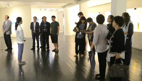 ↑↑ 문화융성위원회 위원들이 시안미술관에서 김정 작가의 영천아리랑전을 감상하고 있다.