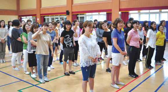 이날 행사에는 교장과 교감을 비롯해 교사와 운영위원회(위원장 이상혁), 학부모회원(회장 정미진)등 100여 명이 방과 후에 학교 강당에 모여 간단한 소개와 인사말을 시작으로 진행됐다. 교사와 학부모가 편을 나누어 윷놀이와 배구, 피구 등의 경기를 하며 정정당당하게 겨루기와 응원으로 즐겁고 흥미진진한 시간을 보낼 수 있었다. 박상호 교장은 “늘 학교와 아이들을 위해 봉사활동과 관심을 가지고 적극 참여해주는 부모님들께 감사를 드린다.”면서 “오늘의 단합대회를 통해 시름을 잊고 서로에 대해 알고 이해하는 시간을 가지면 좋겠다.”고 인사했다.
