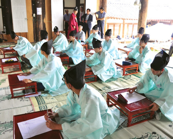 ↑↑ 전통 과거시험을 체험하고 있는 지역의 고등학생들.