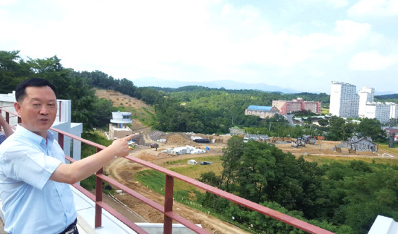| | | ↑↑ 김병운 영천시 힐링산업과장이 영천전투전망타워에서 서바이벌체험장에 대해 설명하고 있다. 손끝 흰색건물이 지휘통제소이고 위쪽은 고지전체험장, 우측 평지가 시가전체험장이다. 뒤편으로 영천중학교가 보인다. | | ⓒ 영천시민뉴스 | |