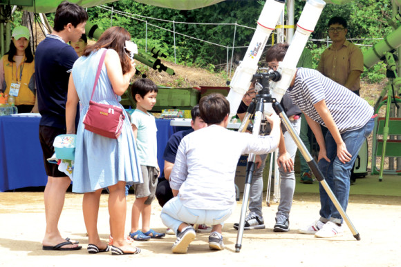 제13회 보현산 별빛축제가 열렸던 지난 23일 오후 3시 천문과학관 야외마당에 설치된 천체망원경을 통해 시민들이 태양의 흑점을 관측하고 있다. 보현산별빛축제는 22일부터 25일까지 4일간 개최됐으며 전국에서 수 많은 관람객들이 다녀가 성황을 이루었다.