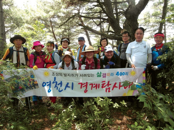 | | | ↑↑ 515 봉우리 가기전 이름호를 봉우리에서 단체사진. | | ⓒ 영천시민뉴스 | | 영천시 경계탐사대(대장 김성근)는 지난달 9일 오전 대창면 영지사와 신광리 구간에서 탐사활동을 펼쳤다. 영지사 주차장에 도착한 대원들은 안전체조를 하고 자신의 몸 상태를 점검했다.