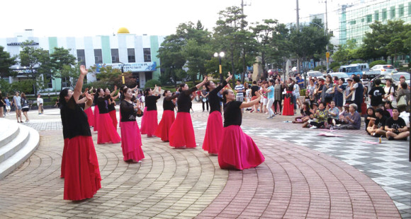 ↑↑ 이언화 무용단원들이 시민 앞에서 공연을 펼치고 있다.