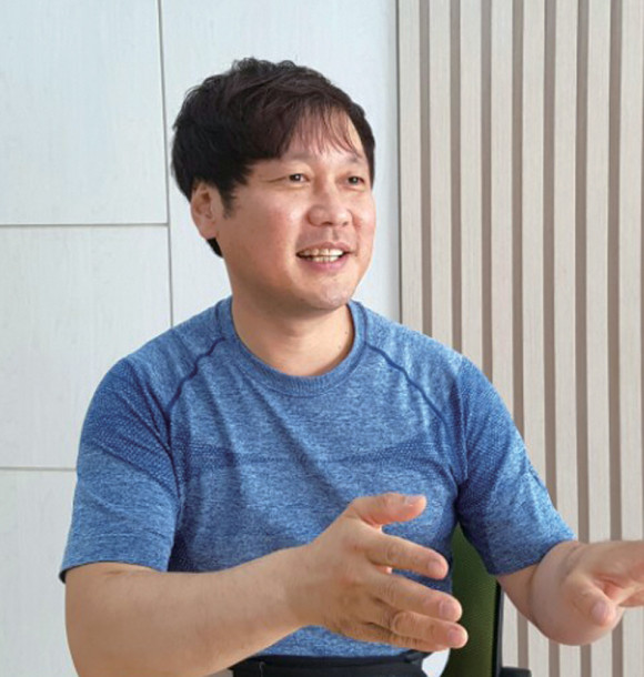 “18년 전인 27살 때부터 스킨스쿠버를 시작했어요. 해병대에서 처음 스킨스쿠버를 접하고 난 뒤 배우고 싶다고 늘 생각했는데 마침 해병전우회의 이봉석 선생님께서 10명 정도 회원을 대상으로 스킨스쿠버 교육을 시작했어요. 그때 몸살이 날 정도로 몰입했죠. 링거를 맞아가며 연습한 거예요. 그때 배운 10명 중 현재 저 혼자 다이버로 활동하고 있어요.”