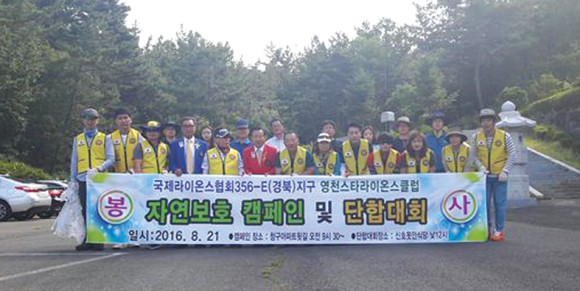 ↑↑ 영천스타라이온스 회원들이 자연보호 캠페인을 했다.