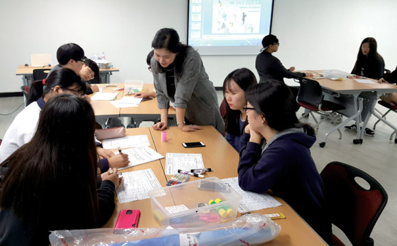 ↑↑ 최정애 한국언론재단 NIE 전문강사가 학생들이 작성한 글을 읽고 있다.