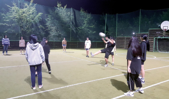 ↑↑ 수업을 마친 학생기자들이 체육활동을 하는 모습.