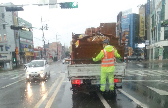 위험천만 장면을 독자가 찍어 제보했다. 지난 2일 아침 7시17분경 망정사거리에서 좌회전 신호를 기다리던 민간 청소관련 차에 청소 관계자가 차 뒤쪽 난간에 메 달려 가는 모습이 카메라에 잡혔다. 이 독자는 “아무리 급하고 짧은 거리 이동이라지만 위험한 행동은 삼가야 한다”면서 “관계기관에서 철저한 교육이 있었으면 한다”고 했다.
