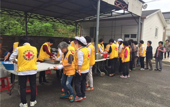 청통면 적십자봉사회(회장 김말선)와 대한적십자사 영천시지구협의회(회장 정해만)는 지난달 26일 청통면사무소 마당에서 어르신 200여명을 모시고 따뜻한 점심을 대접하는 무료급식 봉사활동을 실시했다.