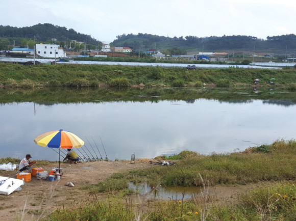 대전교 밑 강에 낚시꾼 몰려