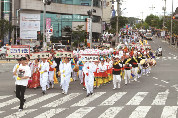 | | | ↑↑ 조선통신사 행렬 중 연고도시 공연단이 행진하고 있다. | | ⓒ 영천시민뉴스 | | 영천강변공원을 중심으로 한약축제 과일축제 문화예술제 부스를 영동교~영천교 사이에 일직선으로 배치해 행사의 집중도를 높인 것이 주효했다. 영동교 아래 주 무대를 중심으로 한약축제 관련부스가 배치됐다.