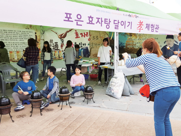 | | | ↑↑ 한약달이기 체험장. | | ⓒ 영천시민뉴스 | | 행사기간동안 한약부스에서는 한약관련 다양한 이벤트와 할인판매행사가 열렸고 과일부스에서는 관람객 체험행사와 특가세일이 이어졌다. 문화예술부스에서는 백일장 미술실기대회 경연을 비롯해 대북공연, 전시, 상여소리 시연 등이 펼쳐져 영천문화의 진수를 뽐냈다.
