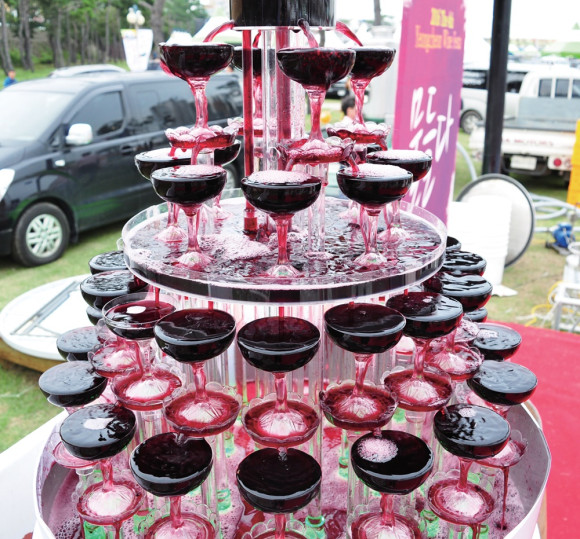 | | | ↑↑ 와인페스타 행사장 입구에 설치된 와인폭포. | | ⓒ 영천시민뉴스 | | 정재식 농업기술센터소장은 “지역의 문화인과 농업인, 한약관련 종사자들이 어우러져서 만들어낸 종합행사였다. 볼거리가 더 다양해 졌다.”라며 “연휴 첫날 비가 오다 보니 인근 대도시민들이 가까운 영천의 축제장으로 많이 왔다. 또 신녕 청통 화산 등 지역 마늘농가들이 비가 와서 농작업을 할 수가 없어 행사장으로 몰려와 관람객이 많았다”고 설명했다.