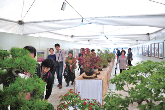 | | | ↑↑ 시민들이 문화예술전시관에서 전시된 작품들을 관람하고 있다. | | ⓒ 영천시민뉴스 | | 영천교 쪽으로 조금 내려가면 음악분수 옆에 과일축제 부스가 나타나고 조금 더 아래로 내려가면 문화원아래 문화예술제 행사장이 나온다. 3개 축제가 일직선상에서 동시에 열리다보니 관람객 입장에서는 어느 시간에 행사장을 방문하더라도 각각의 무대마다 쉼 없이 다양한 프로그램이 펼쳐져 골라볼 수 있는 재미가 쏠쏠했다는 평가다.