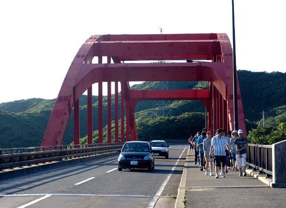 ◆ 만제키바시(만관교) = 섬을 남북으로 가르는 커다란 운하다. 1900년(메이지 33년)에 일본 해군이 군사상의 이유로 굴착했으며 러일전쟁을 승리로 이끄는데 큰 몫을 했다. 동부의 구스보 연안과 서부의 아소만을 연결하고 있다. 도보로 반제이키바시를 걸어보았다.