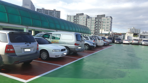 | | | ↑↑ 장날이면 공설시장 2층 주차장에는 차량으로 가득 차 있다. | | ⓒ 영천시민뉴스 | | 공설시장 주차장 입구도 항상 문제로 제기되고 있는 부분이다. 현재 영천공설시장 주차장 입구는 시장 내부로 들어가야만 진입할 수 있다. 그러나 2, 7일 장날에는 노점과 상인, 고객으로 뒤엉켜 복잡한 주차장 입구에 진입하기가 어려운 실정이다. 평소에도 공설시장에 물건을 구입하려는 고객들도 주차장을 이용하기 보다는 대로변에 잠시 주차하고 물건을 구입하는 경우가 다반사다. 그렇다 보니 영천공설시장은 4차선 대로변이지만 항상 차량통행에 어려움이 따른다.