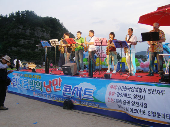 2008경상북도 찾아가는 문화활동의 일환으로 개최된 이번 공연은 통기타 그룹 여럿이 함께, 이언하 무용단 무용공연, 아바색소폰 합주단-여름노래 연주, 색소폰 솔로 연주(색소포니스트 김천중), 포크싱어 공연 등으로 이어졌으며 관객과 함께 하는 레크레이션을 진행하는 등 피서객들에게 즐거운 한때를 선사했다.