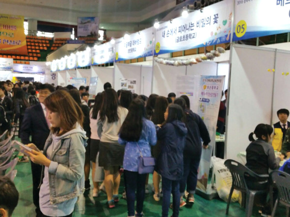 ↑↑ 영천체육관 내부에 설치한 각 학교 부스를 찾아오는 학생과 시민들.