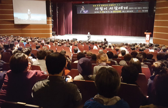 김제동 초청 ‘사람이 사람에게’ 이야기 콘서트가 지난 30일 시민회관에서 열렸다. 농민회 초청으로 이루어진 김제동 토크쇼에서 김제동씨는 “고향인 영천에 오니 말이 통해서 너무 좋다. 정이 있는 영천 말이 그리웠다”며 고향 선배 후배 어르신들에 큰 인사를 올린다며 토크쇼 서두에서 인사했다.