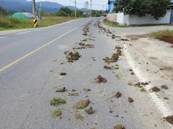 벼수확 등 농사철에 논 주변 도로에 흙이 떨어진 모습을 종종 볼 수 있다. 농민들이 농기계를 사용하고 그대로 도로에 나오는데, 이때 농기계에서 떨어진 흙이 도로위에 떨어져 도로를 더럽히고 있어, 농민들도 공공시설물 이용에 세심한 주의가 필요하다.