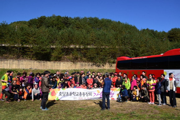 호당초등 총동창회(회장 서호수 15회) 가을산행대회가 지난달 30일 오전 시민운동장을 출발해 울진 덕구 계곡에서 열렸다. 가을산행대회에는 총동창회원 120여명이 참석하고 버스 3대로 이동했다. 서호수 회장은 “동문간의 화합은 물론 가을 단풍을 마음껏 즐기고 안전한 산행이 되길 바란다”고 출발전 인사했다.