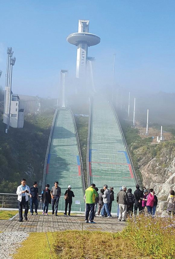 | | | ↑↑ 동계올림픽 관련시설을 견학하기 위한 관광객들이 발길이 끊이지 않고 있다. | | ⓒ 영천시민뉴스 | | 2018년 강원도에서 동계올림픽이 열린다. 설상 11종목 중 스키점프 크로스컨트리 바이애슬론 봅슬레이 루지 스켈레톤 알파인스키 스노보드 8개 종목이 평창에서 열린다. 현재 설상경기장 조성이 마무리되고 IOC 인증만을 남겨두고 있다. 내년 1월 까지 국제대회를 치를 수 있도록 테스트가 진행된다. 지금도 올림픽에 대한 관심에 힘입어 관련 시설을 견학하려는 관람객의 방문이 잇따르고 있다. 이와 함께 역대 개최도시의 사후부담을 고려해 올림픽 이후 경기장 활용방안에 대해서도 철저히 준비하고 있다고 한다. 봄 여름 가을에는 대중골프장으로 활용하고 하계대회도 가능하도록 설계돼 있다. 대회운영과 경기지원시설은 리조트로 활용한다. 기존 시설을 최대한 활용해 이곳을 찾는 관광객에게 체험하고 즐길 수 있도록 한다는 계획이다. 해발 700m에 위치한 장점을 살려 동북아시대 해외부유층을 겨냥한 힐링치료와 승마체험도 할 계획이다. 강원도 개발공사 최일홍 과장은 “최고 부유층 1%를 겨냥해 골프장 위에 고급 빌라를 건립했는데 150채 가운데 144채가 분양 완료됐다”면서 “국민 건강증진을 위한 최고 휴양도시로 거듭날 것”이라고 했다.