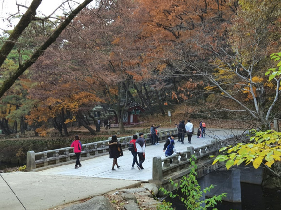 지난 13일 은해사엔 늦가을 정취를 느끼려는 사람들의 발길로 붐볐다. 일주문에서 본당 사이 경내는 연인이나 가족 단위 방문객들이 손을 잡고 단풍을 배경으로 사진을 찍는 등 늦가을 정취를 카메라에 담기도 했다.