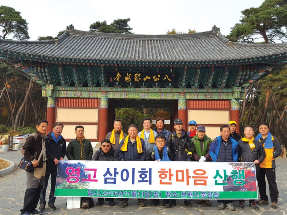 영천고 32동우회(회장 정진영)는 지난 13일 오전 둔치에 집결해 은해사 신일지 인종태실 백흥암 일대를 다니며 심신단련을 겸한 단합회를 가졌다.