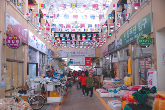 시장입구에 들어서자 눈에 띄는 것은 노란 선이다. 그런데 모든 점포와 노점들이 노란선 밖으로 나오는 경우를 찾아 볼 수 없었다.