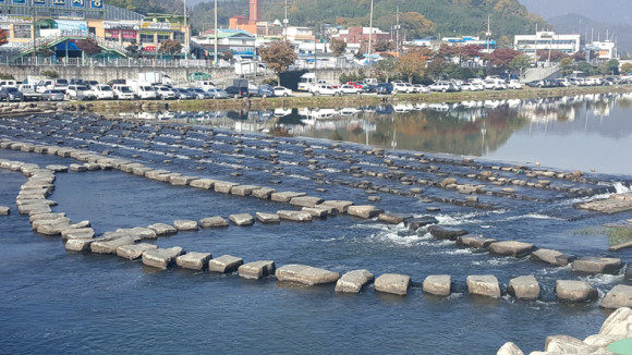 | | | ↑↑ 예양교 아래의 돌다리 모습. | | ⓒ 영천시민뉴스 | | 예양교의 특이한 점은 바로 토요시장과 연결되는 것이다. 다리를 건너 시장입구에 들어서자 가장 놀라운 것은 영천전통시장처럼 혼잡한 모습이 없다는 것이다. 그렇다고 고객이 없는 것은 아니다. 영천전통시장보다 규모는 작았지만 고객은 영천장날보다 많아 보였다.