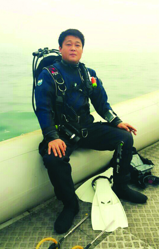 ↑↑ 스킨스쿠버 장비를 착용한 장유수 회장.