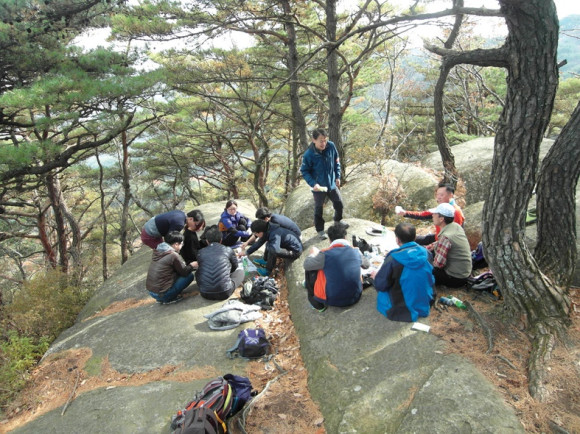 영천시청 힐링산업과(과장 김병운) 직원들은 지난 12일 은해사 일대에서 힐링하고 직원들간 화합의 시간을 가졌다. 힐링산업과 직원들은 지역 경제와 버스노선을 경험하기 위해 아침 일찍 시외버스터미널에서 버스를 타고 이곳에 들어와 갈 때도 버스로 시내까지 나갔다. 사진은 중암암에서 점심시간을 가지는 모습.